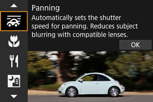 Montirajte objektiv kompatibilan sa [] režimom (švenkovanje) kako biste smanjili zamućenost objekata, tako da objekti budu jasni i oštri.
