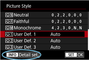 - Ako ste već registrovali stil slike u okviru korisnički definisanih postavki [User Def. *], izmenom polaznog stila slike poništićete podešavanja prethodno registrovanog korisničkog stila slike.