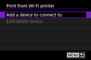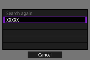 - Ako vaš štampač nije prikazan na listi, odaberite [Search again] tako da omogućite da fotoaparat ponovo potraži i prikaže štampač.