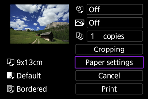 - Biće odštampan deo slike unutar okvira za opsecanje. Možete izmeniti oblik (odnos stranica) okvira preko opcije [Paper settings].