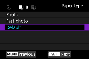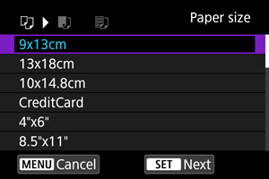 - (5) Podesite veličinu i vrstu papira i izgled strane (, , ).