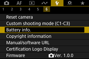 Na fotoaparatu možete registrovati najviše šest baterija LP-E6P/LP-E6NH/LP-E6N/LP-E6. Da biste registrovali nekoliko baterija na fotoaparatu, ponovite donji postupak za svaku bateriju.