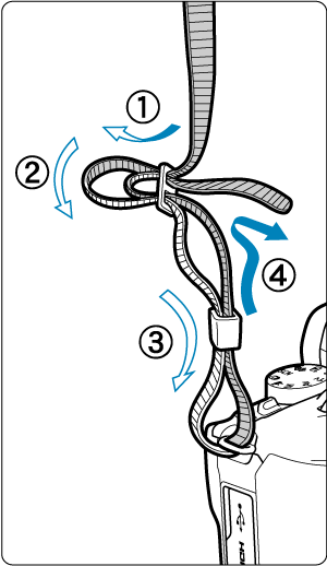 Provucite kraj trake kroz kukicu za traku sa donje strane. Zatim provucite traku kroz kopču kao što je prikazano na slici. Zategnite traku kako se ne bi olabavila i odvezala iz kopče.