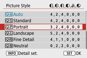- Ako promenite podrazumevana podešavanja, ona će biti označena plavom bojom (dostupno samo za stavke menija pod [