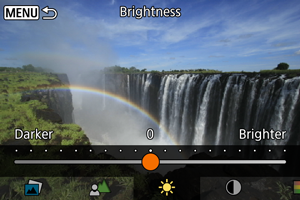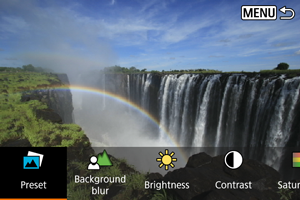 Podesite zamućenje pozadine. Izaberite više vrednosti da biste pozadinu učinili oštrijom. Da biste zamaglili pozadinu, izaberite niže vrednosti. Opcija [Auto] prilagođava zamućenje pozadine tako da odgovara odgovara osvetljenosti. U zavisnosti od osvetljenosti objektiva (f/broj), neke pozicije možda neće biti dostupne.