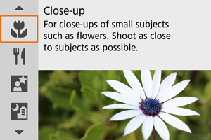 Koristite režim [] (krupan plan) za krupne planove malih objekata kao što je cveće. Da bi male stvari izgledale mnogo veće koristite makro objektiv (prodaje se zasebno).