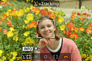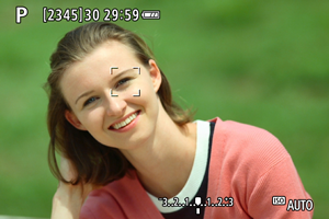 Fotoaparat prepoznaje i izoštrava lica ljudi. Ako se lice pomera, AF tačka [] se takođe pomera da bi pratila lice.