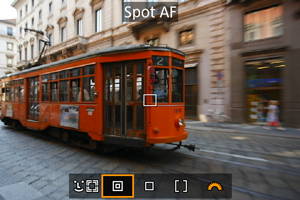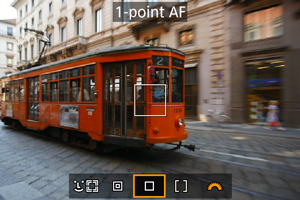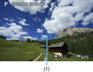 - AF tačka (1) će se pojaviti. Sa zonskim AF, prikazan je okvir zonskog AF.