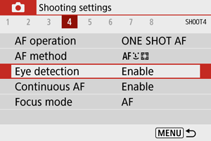- Da biste otkazali autofokus sa prepoznavanjem očiju, podesite [