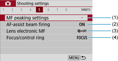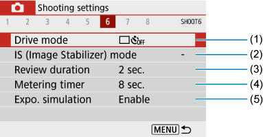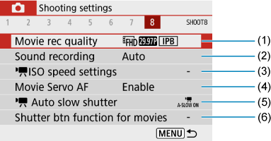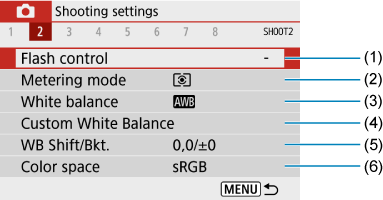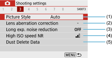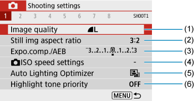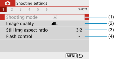 U režimima osnovne zone prikazani su sledeći ekrani. Imajte na umu da dostupne stavke podešavanja variraju u zavisnosti od režima snimanja.
