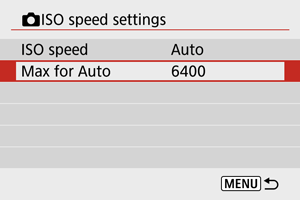 - Da biste odredili opciju [AUTO] prilikom podešavanja [ISO speed] u [