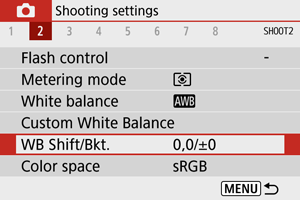 da biste poništili sve postavke [WB Shift/Bkt.].