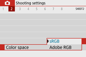 Ovaj prostor boja se uglavnom koristi za komercijalno štampanje i ostale profesionalne namene. Preporučuje se da odaberete ovu postavku ako koristite monitor kompatibilan sa Adobe RGB sistemom ili štampač sa podrškom za DCF 2.0 (Exif 2.21 i novije verzije).