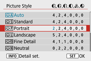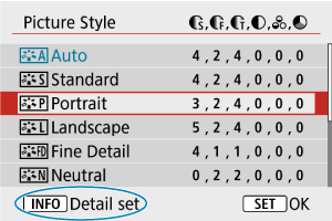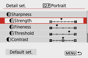 - Ako odaberete [Default set.] u 3. koraku, možete vratiti podešavanja parametara odgovarajućeg stila slike na podrazumevane vrednosti.