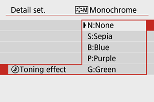 Možete prilagoditi stilove slike izmenom podrazumevanih podešavanja. Više informacija o prilagođavanju stila slike [Monochrome], potražite u odeljku [] Prilagođavanje monohromatskog stila slike.