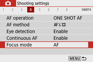 : Focus mode] se ne prikazuje kada je fokusna pozicija u efektivnom dometu isključivo za manuelno fokusiranje (MF). Okrenite fokusni prsten ka beskonačnom (udesno, gledano sa prednje strane fotoaparata) da biste pomerili fokusnu poziciju dok se ne pojavi [