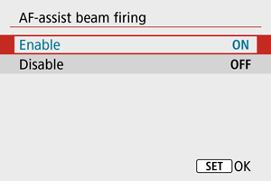 Kada je to potrebno, aktiviranje pomoćnog AF svetla je omogućeno.