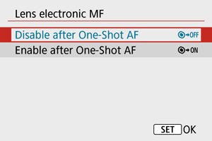 Kod objektiva sa elektronskim manuelnim fokusom možete podesiti način ručnog podešavanja fokusa pri snimanju sa pojedinačnim autofokusom.