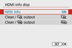 Možete konfigurisati prikaz informacija za izlaz slike preko HDMI kabla.