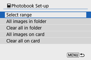 - Da biste poništili odabir, odaberite [Clear all in folder] ili [Clear all on card].