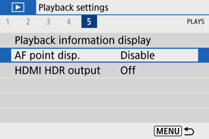 Možete prikazati AF tačke u kojima je slika izoštrena, tako da budu oivičene crvenom bojom na ekranu pri reprodukciji. Ako je podešen automatski odabir AF tačke, može se prikazati više AF tačaka.