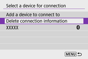 Pre nego što uparite fotoaparat sa drugim bežičnim daljinskim upravljačem BR-E1, obrišite informacije o povezanom bežičnom daljinskom upravljaču.