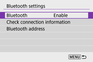 Možete proveriti Bluetooth adresu fotoaparata.