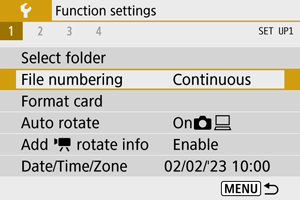 Datoteke se numerišu u nizu u rastućem redosledu, čak i nakon zamene kartice ili kreiranja novog direktorijuma