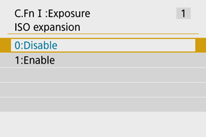 Čini “H” (ekvivalentno ISO 25600) dostupnim kao ISO brzinu koju možete podesiti. Imajte na umu da proširene ISO brzine (H) nisu dostupne kada je funkcija [: Highlight tone priority] podešena na [Enable] ili [Enhanced].