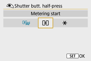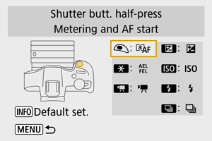 | Pokretanje merenja svetla i autofokusa | ● | ○ | |||||||||||