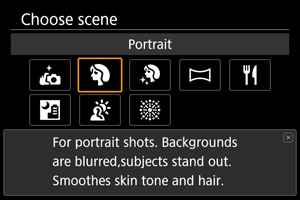 Koristite režim [] (Portret) da biste zamaglili pozadinu i istakli osobu koju snimate. Ovaj režim omogućava da tonovi kože i kosa izgledaju mekše.