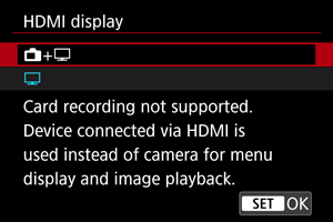 ]. Meniji fotoaparata i reprodukcija slike se prikazuju samo na ekranu povezanom putem HDMI.