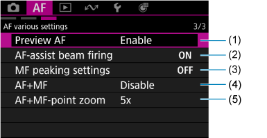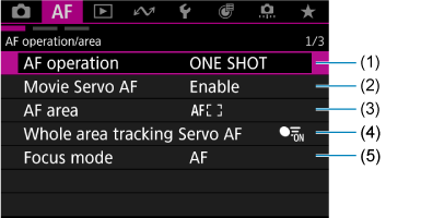 Kartica u meniju: AF (snimanje fotografija)
