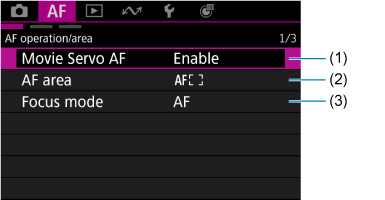 - (1) Video servo autofokus