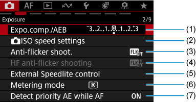 - (1) Korekcija ekspozicije/Serijsko snimanje sa AE (AEB režim)