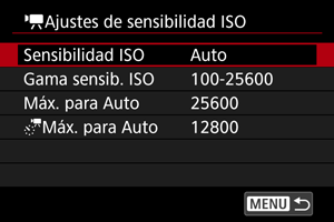 Možete podesiti raspon ručnih postavki ISO brzine (minimalni i maksimalni limit). Prošireni ISO se takođe može konfigurisati.