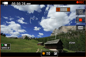 - Ako dođe do promene u osvetljenosti tokom snimanja video zapisa sa automatskom ekspozicijom, video zapis se naizgled može nakratko zaustaviti. U tom slučaju, snimajte video zapise sa manuelnom ekspozicijom.
