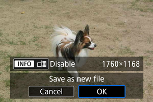 Možete izrezati snimljenu JPEG/HEIF sliku i sačuvati je kao novu sliku. Opsecanje je dostupno za JPEG ili HEIF slike. RAW slike i slike za hvatanje kadrova od 4K ili 8K video zapisa se ne mogu izrezati.