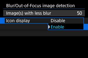 Ova funkcija može automatski da odredi koliko su slike mutne ili van fokusa, uglavnom na osnovu lica JPEG/HEIF slika ljudi. Postavljanjem nivoa zatamnjenja ili nedostatka fokusa možete razvrstati, zaštititi ili oceniti sve slike na tom nivou.