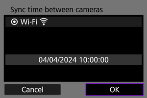 Sinhronizujte vreme na fotoaparatu otpremniku i fotoaparatima prijemnicima na sledeći način.