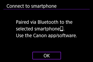 - Ako je fotoaparat već uparen sa drugim uređajem biće prikazana poruka. Odaberite [OK] da biste prekinuli trenutnu Bluetooth vezu.