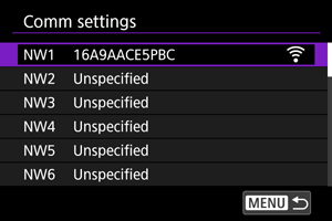 - Odaberite Wi-Fi podešavanja ako su postavke žičane LAN veze već registrovane u okviru [Comm settings 1], ili odaberite podešavanja žičane LAN veze ako su Wi-Fi podešavanja već registrovana u okviru [Comm settings 1].