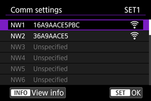 Možete registrovanje više podešavanja komunikacije (više Wi-Fi podešavanja ili kombinacije podešavanja žičane LAN veze i Wi-Fi) kao jedan skup podešavanja veze.