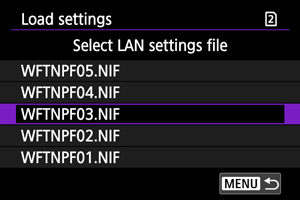 Odaberite [Select from list] da biste izlistali postavke za komunikaciju sačuvane na fotoaparatu. Odaberite postavke za komunikaciju koje želite da koristite.