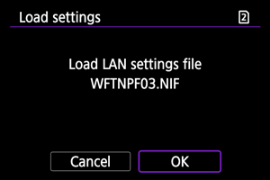 - Čak i ako pokušate da sačuvate više od 41 postavke na kartici ubačenoj u fotoaparat preko računara ili drugog uređaja, samo 40 postavki će biti prikazano na ekranu sa postavkama za učitavanje na fotoaparatu. Da biste učitali više od 40 postavki, najpre učitajte 40 postavki sa jedne kartice, a zatim učitajte preostale postavke sa druge kartice.