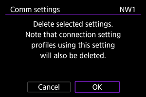 - Odaberite [Clear selected] da biste obrisali odabrane registrovane postavke za komunikaciju. Odaberite [OK] na ekranu za potvrdu.
