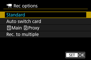 Rec options] na [Standard] ili [Auto switch card], odaberite karticu za snimanje i reprodukciju.