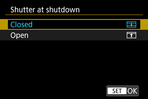 Možete podesiti da li da ostavite okidač otvoren ili da ga zatvorite kada je prekidač za napajanje fotoaparata postavljen na .