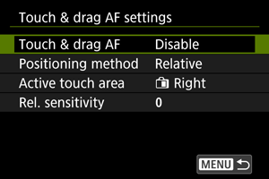 Ako podesite [Positioning method] na [Relative], možete odrediti količinu kretanja kao odgovor na dodirivanje ili prevlačenje.