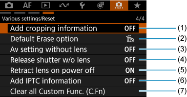 : Clear all Custom Func. (C.Fn)] obrisaćete sva podešavanja prilagođenih funkcija.